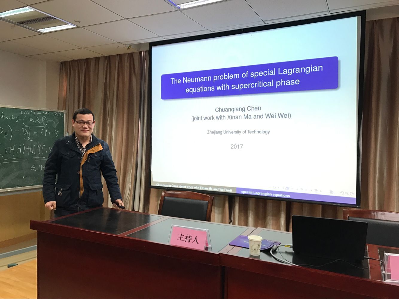 3月16日上午,浙江工业大学理公司陈传强老师应邀来访公司,为公司师生做了题为“The Neumann problem of special Lagrangian equations with supercritical phase”的学术报告。
