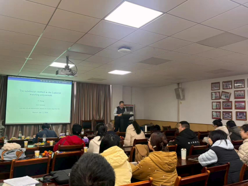 安徽大学汪毅教授的报告题目为《The subdivision method in the Laplacian matching polynomials》。报告伊始,汪毅教授从匹配多项式与拉普拉斯匹配多项式的基本概念出发,介绍了该方向的研究背景与发展脉络,并说明细分方法在建立不同多项式之间联系、研究零点性质等问题上的重要作用。随后,汪毅教授重点汇报了团队在拉普拉斯匹配多项式方面的最新研究成果,围绕系数的组合解释、零点的交错与主序关系,以及与无符号拉普拉斯矩阵特征多项式的联系等内容展开讲解,思路清晰、论证严谨。报告最后,汪毅教授与本团队教师就相关应用与进一步研究方向进行了深入交流,并就可继续推进的问题提出了有建设性的建议与指导。整场报告条理分明、深入浅出,激发了师生的学术热情,也为后续研究提供了有益启示。
