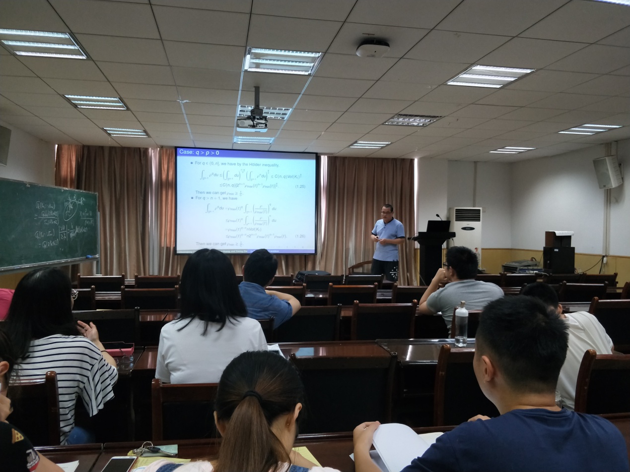 报告中,陈传强老师介绍了凸体的基本知识、$L_p$-Dual Minkowski问题以及他和合作者利用Gauss型曲率流得到该问题解的存在性。最后,参加报告的师生与陈传强老师讨论了一些相关专业的问题,开拓了自身眼界。