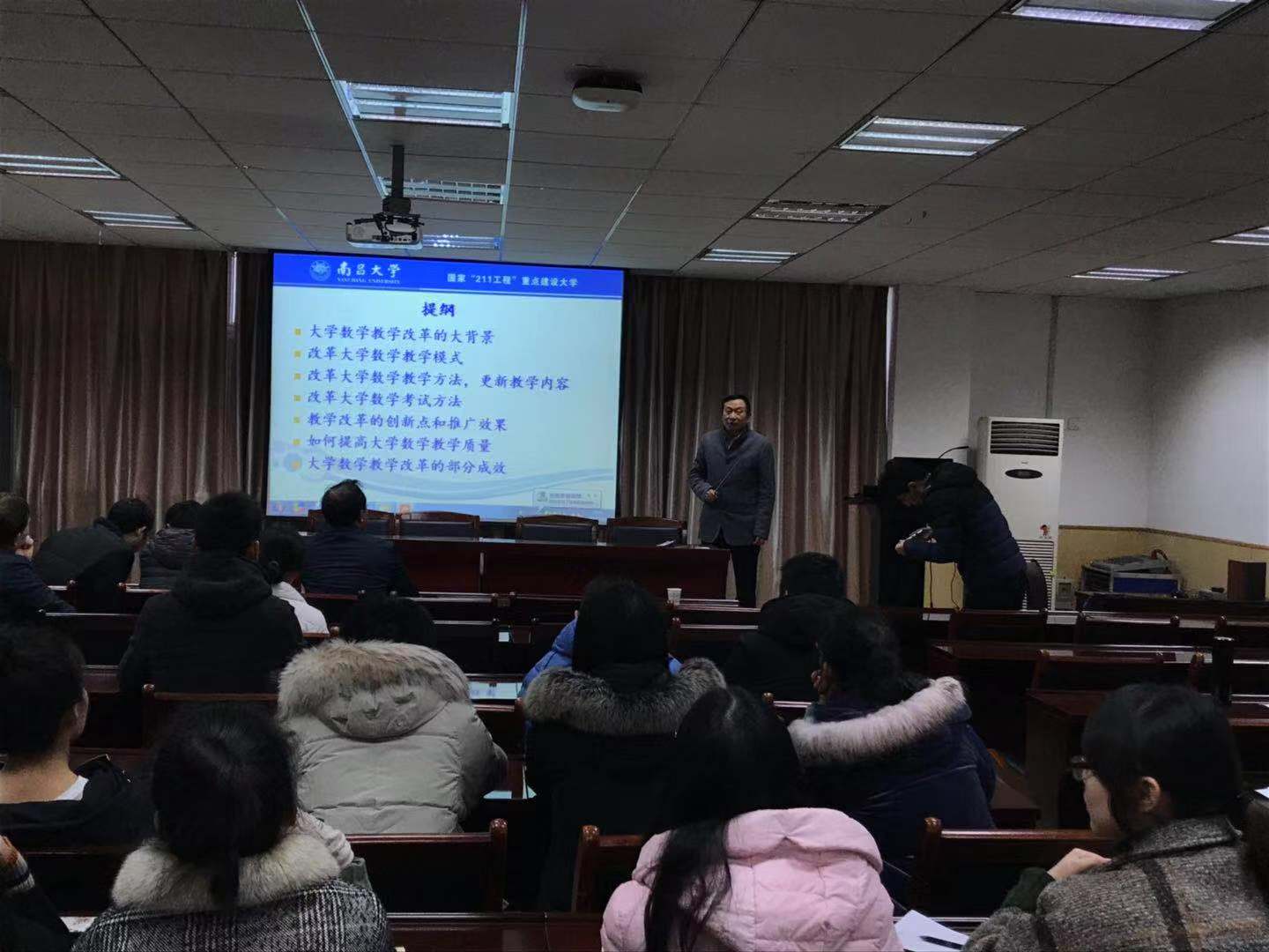 12月5日下午,南昌大学朱传喜教授应邀来访公司,在院201报告厅为公司师生做了题为《大学数学教学改革的研究与实践》的报告,报告由公司的邹斌教授主持。来自应用统计、应用数学、计算数学等相关专业的教师、博士和硕士研究生参加了本次学术报告。