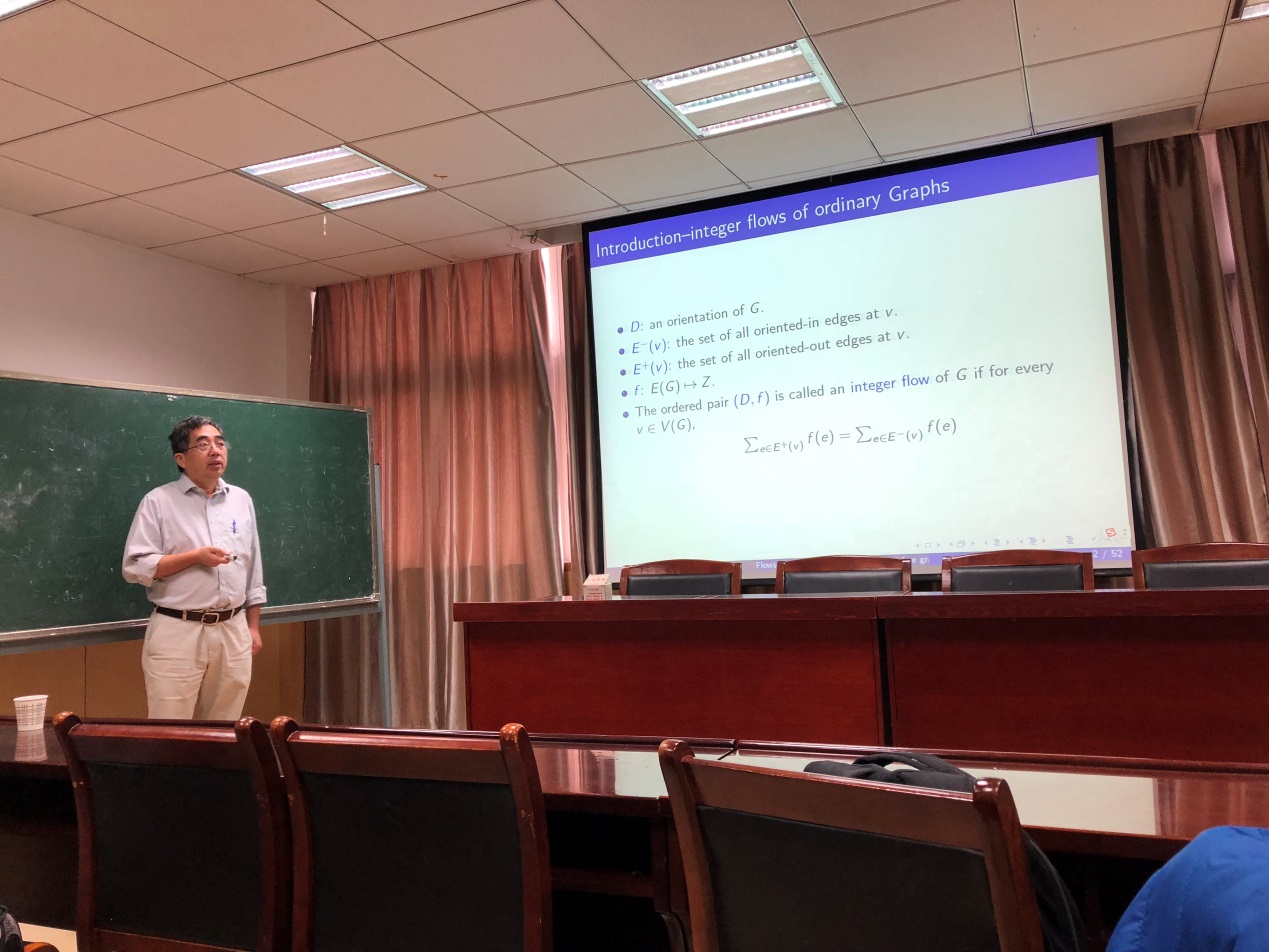 本次学术报告,罗荣教授主要介绍了其课题组在符号图的整数流方面所取得的最新研究成果。报告中,罗荣教授首先介绍了平凡图的整数流,然后指出简单图中模流与整数流的等价性是解决整数流问题的重要方法之一,而符号图中模流与整数流并不等价是处理符号图整数流问题的难点和关键所在,最后他着重介绍了其课题组在符号图的6流猜想方面所取得的方法突破和关键进展。报告结束后,罗荣教授就在座教师们提出的问题给予了耐心的解答。罗荣教授的报告由浅入深,拓宽了大家的学术视野,增强了大家对学术前沿的了解和热点问题的把握。他还鼓励青年教师要潜心教学和科研,在积累好学术基础的同时积极申报研究课题,多参加国内外的学术会议。通过报告会,极大鼓舞了青年教师们学术热情,使大家受益匪浅。