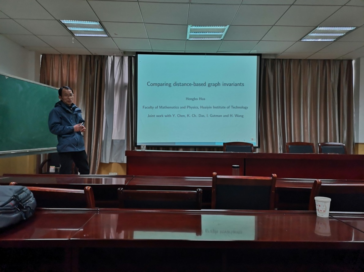 3月29日,西北工业大学李斌龙副教授、长江大学严政副教授、淮阴工公司华洪波教授应邀来访公司,在院201报告厅为公司师生分别做了题为“Hamiltonian circles of the prism of infinite cubic graphs”、“m-dominating k-ended trees of n-connected graphs”和“On Comparing distance-based graph invariants”的学术报告,报告由公司的刘慧清教授主持。来自运筹学与控制论专业的教师、博士和硕士研究生参加了本次学术报告。