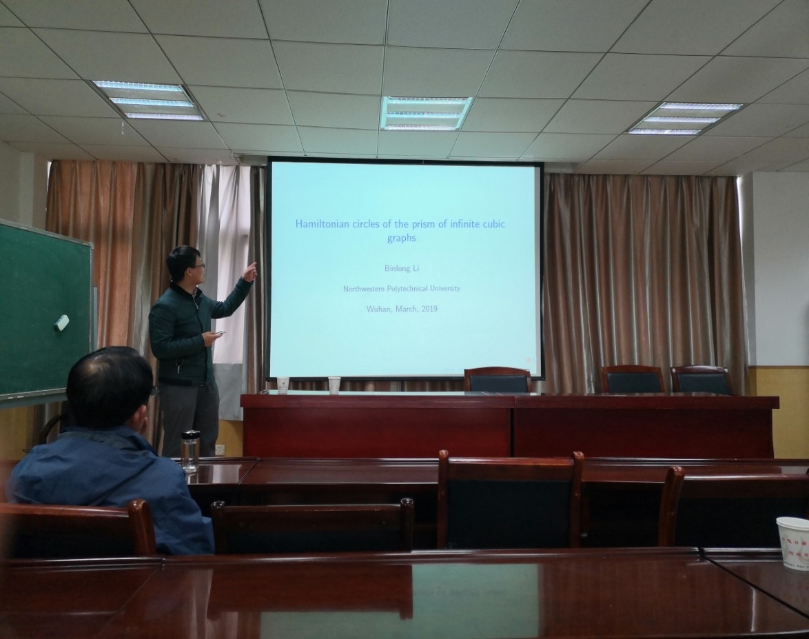李斌龙副教授主要介绍了其课题组在无限图的哈密顿圈方面所取得的最新研究成果。通过报告会,极大鼓舞了青年教师们学术热情,使大家受益匪浅。