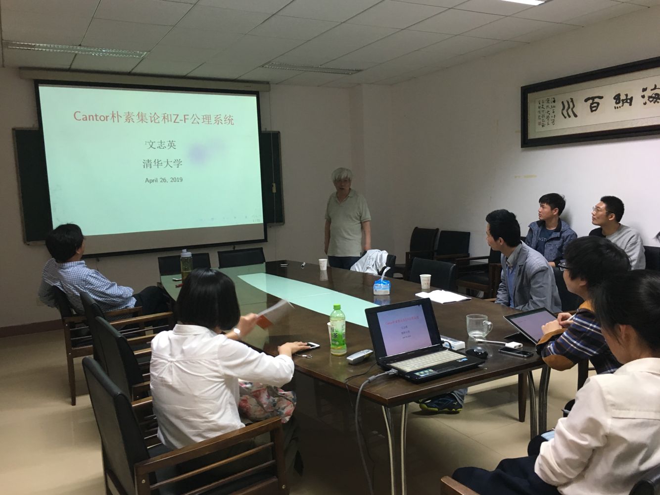 2019年5月9日下午,清华大学文志英教授应邀来访公司,在数学与统计公司203报告厅为师生做了题为“Cantor朴素集论与Fraenkel-Zermelo公理系统”的学术报告。