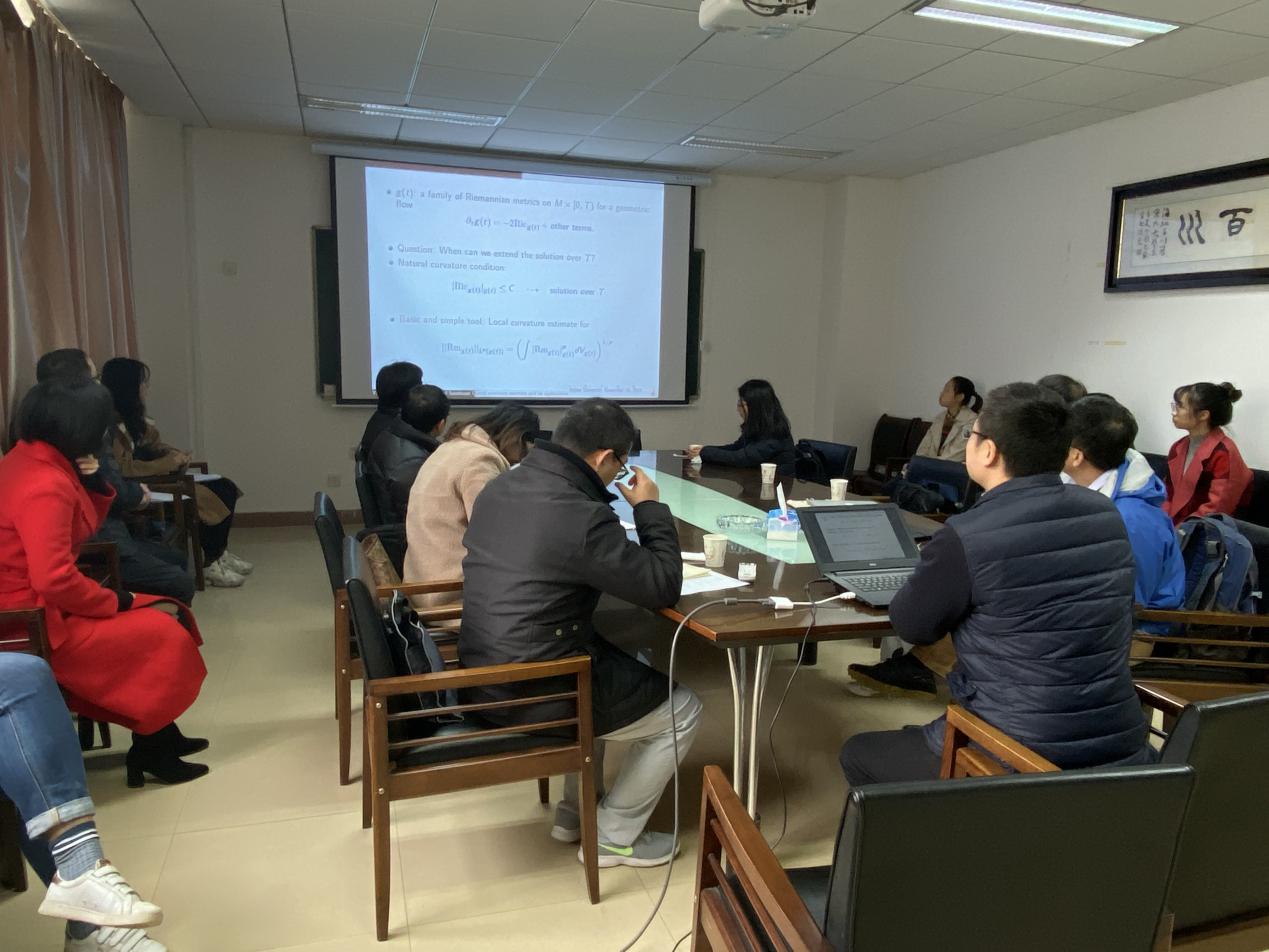 2019年12月14日,湖北民族大学朱保成教授、东南大学李逸教授、中南大学袁伟教授、香港中文大学邱国寰助理教授、上海交通大学朱苗苗教授和公司涂强老师等六位学者在公司203会议室分别作了微分几何方向的学术报告,相关专业的教师和研究生参加了报告会。