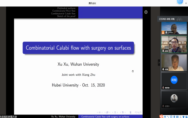 2020年10月15日上午,武汉大学徐旭教授应公司陈立老师邀请,作线上学术报告。报告通过腾讯会议举行,由陈立老师主持,来自公司几何团队的教师、研究生10余人参与了报告的听取和讨论。