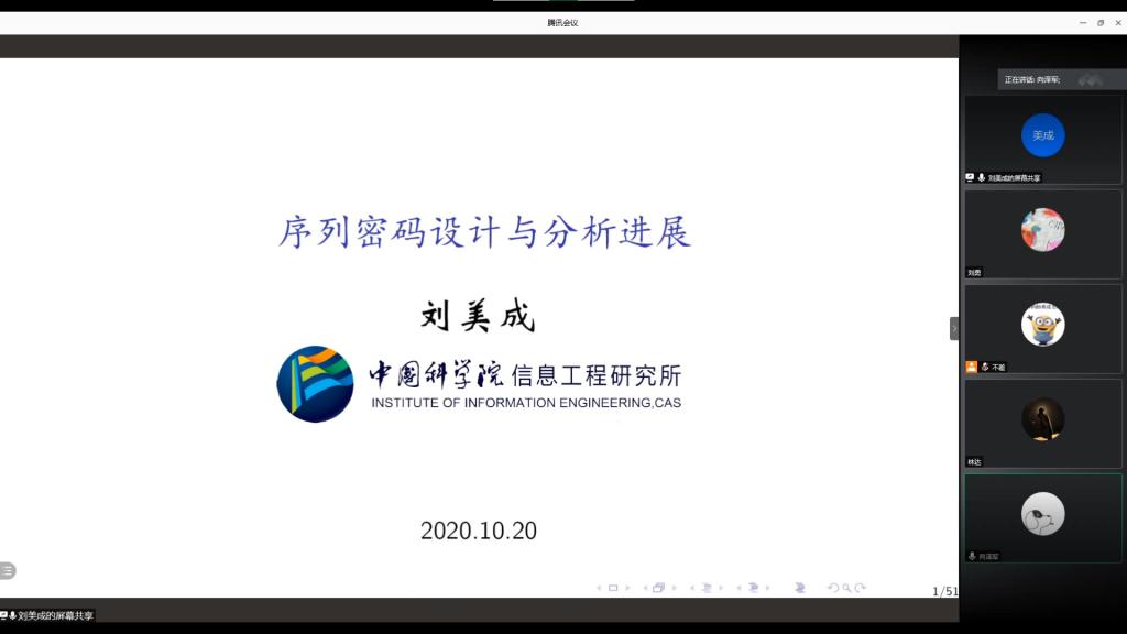 2020年10月20日下午,太阳集团tyc539信息工程研究所副研究员刘美成应公司向泽军邀请为公司密码学团队作线上学术报告,报告通过腾讯会议举行,会议由向泽军主持。来自公司密码学团队的相关教师、博士和硕士研究生10余人参与了报告的听取、讨论。