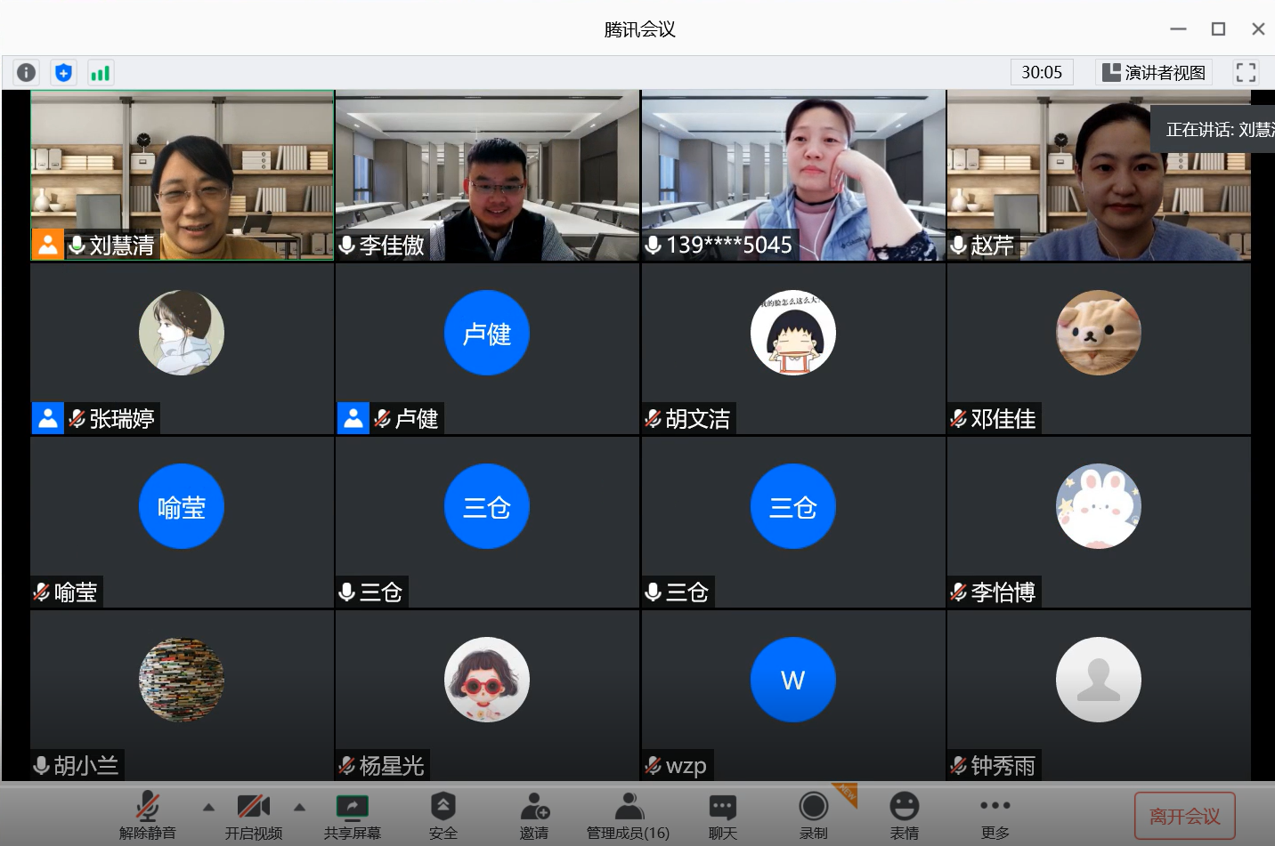 报告结束后,李佳傲老师就师生们提出的问题给予了详细的解答,大家对报告内容十分感兴趣。最后,刘慧清教授对本次报告进行了总结。整个报告过程持续了两个小时,线上报告和交流互动热烈。