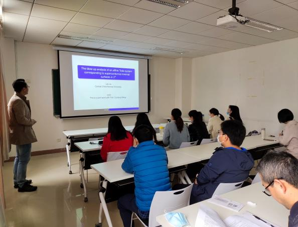 2021年3月26日上午,华中师范大学刘磊教授应公司陈立老师邀请,作线下学术报告。报告在太阳集团tyc539203报告厅举行,由陈立老师主持,来自公司几何团队的教师、研究生10余人参与了报告的听取和讨论。