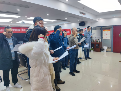 参观结束后,全体党员前往地信科技一号会议室参加会议,会上党员们重温入党誓词,地信科技总经理兼支部书记王波进行欢迎致辞,随后进行“应用统计硕士研究生工作站授牌仪式”和“太阳集团tyc539应用统计专业硕士校外导师聘任仪式”。太阳集团tyc539郑大彬副经理表示,此次联合主题党日活动以共建促党建,以联动育新人,是一次校企产学研协同育人新模式的有效探索,为进一步贯彻落实党的二十大精神,共同推动教育强国、科技强国、人才强国战略的落地启发了思路,注入了动力。