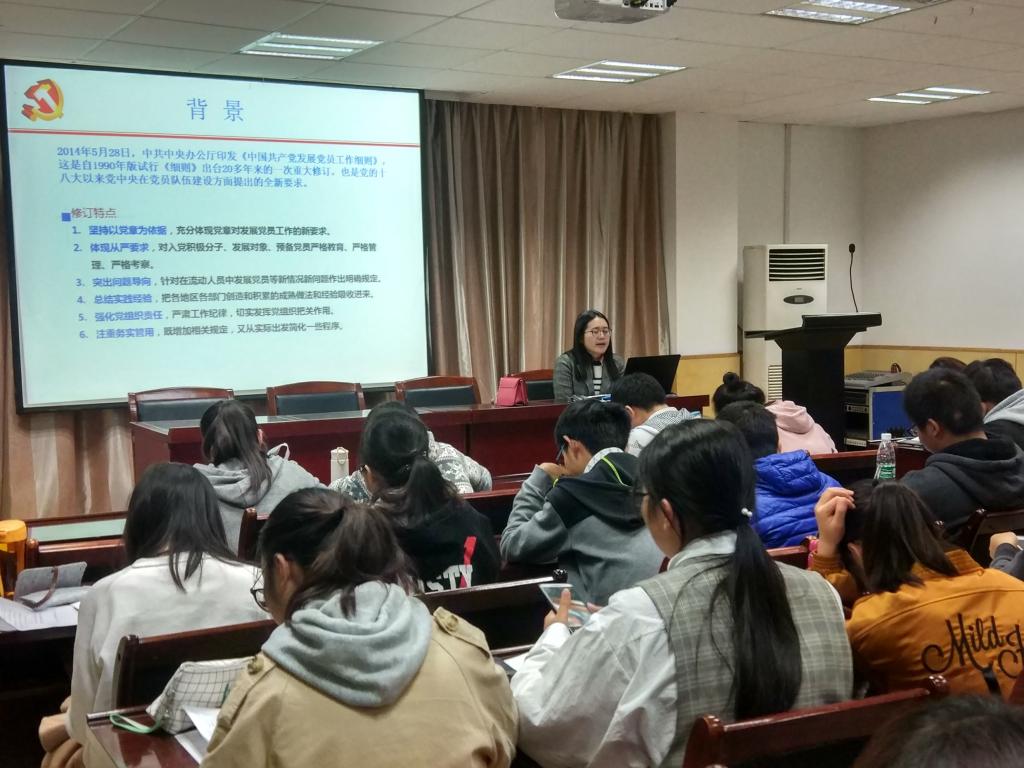 2018年11月6日,数统院2018年下半年入党积极分子的第七次党课学习于晚七点在数统院会议室201准时开始。此次党课学习邀请了数统院的辅导员马荣老师给入党积极分子上党课。