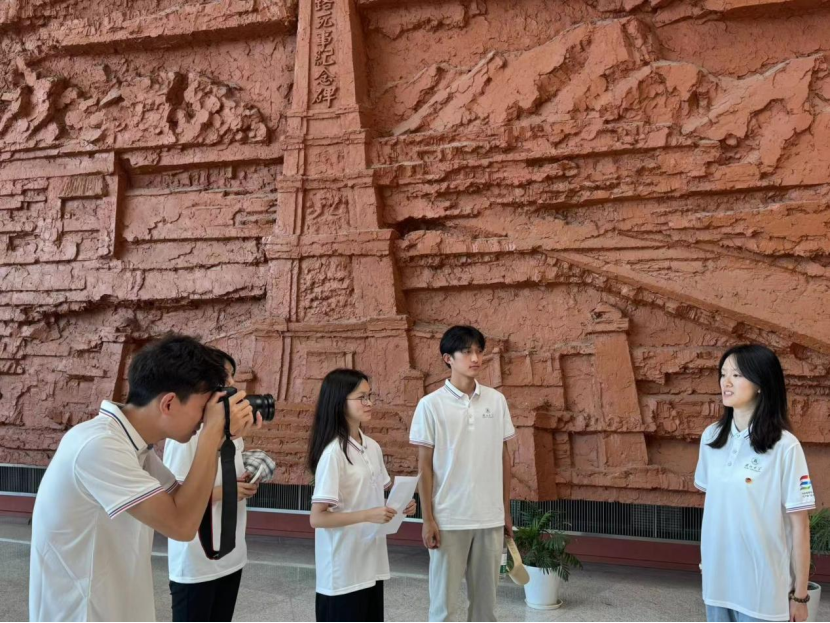 团队在辛亥革命博物馆拍摄微团课。(通讯员许靖宇 摄)