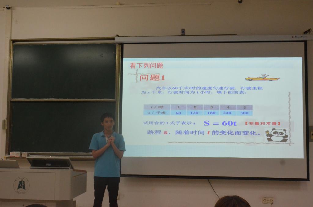 本次比赛分四个小组同时进行,讲课顺序由现场抽签决定,每位参赛者的讲课时间为15分钟,内容涉及到了初中及高中的各种知识,如《正弦、余弦函数图象性质》等等。选手们运用亲切的语调,巧妙的教学设计,多元化的多媒体辅助教学,吸引了我们在场的每位同学,每位选手讲课结束后都会得到评委的点评。