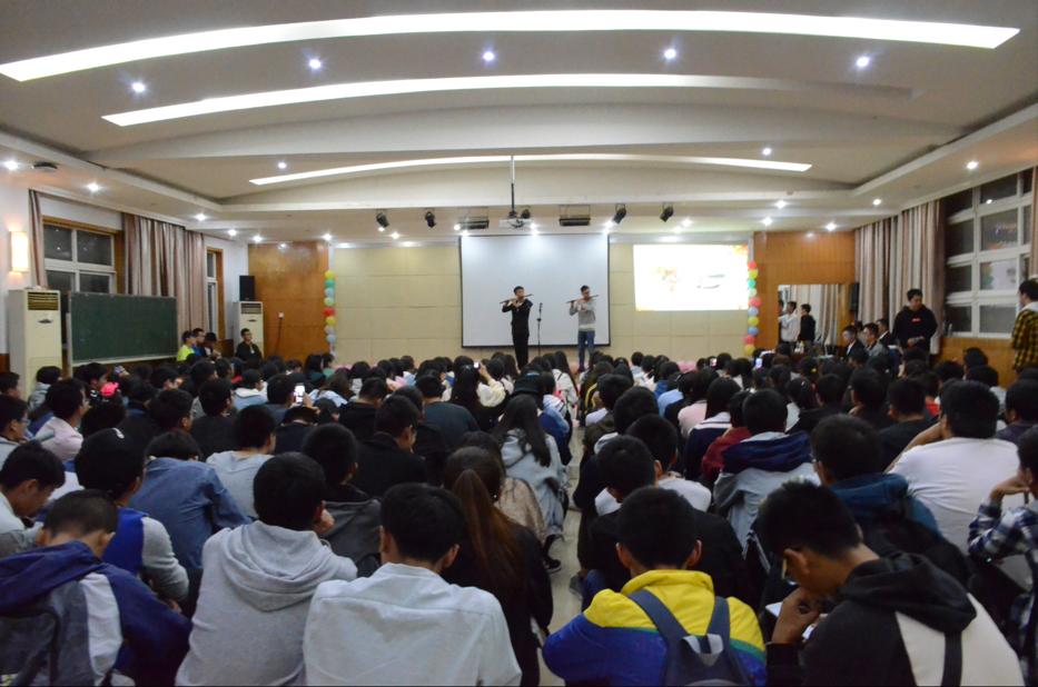 开场舞是由17级数学与应用数学徐晨希同学带领表演的《别人家小孩》,尽显青春活力,现场同学的齐声欢呼。而有陈婉佳、罗清馨等同学带来的国标舞更显出舞蹈的魅力和帅气,两支舞蹈前后呼应,为观众带来不一样的视觉冲击。除了舞蹈表演,由17级姚江等同学带来的笛箫合奏让新生们犹如身在世外桃源。接下来是由17级应用统计学万方仪等同学带来的小品,现场充斥着欢笑声,不过由17级数学与应用数学的班委天团将欢笑声的气氛推向高潮。最后在一首“天线宝宝”演唱的《那些你很冒险的梦》的歌声中结束长达两个小时的晚会。