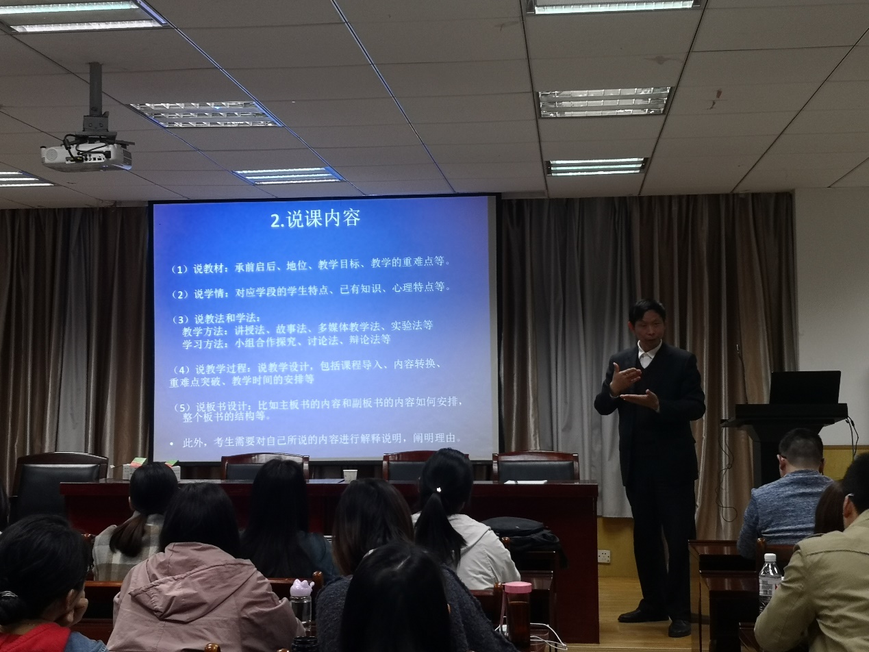 2019年4月12日晚上,公司在201报告厅为学科教学(数学)等方向研究生及师范方向本科生举办了关于教师招聘面试辅导讲座。此次活动特别邀请了铁四院中学唐毅董事长、武汉市硚口区韩家墩小学王旭老师和太阳集团tyc539黄朝炎老师。