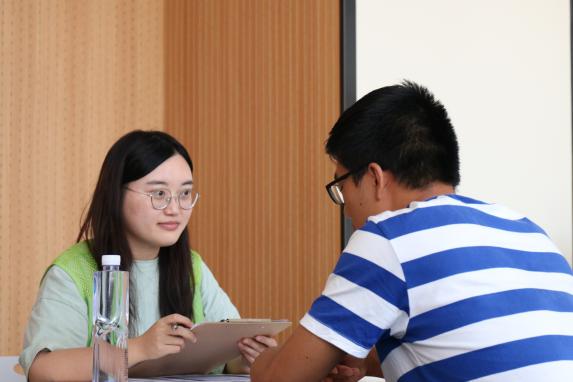 武汉市社工督导汪小富老师、汉阳区社会组织孵化基地张春磊老师、中新社工许欢老师作为主讲嘉宾及面试官准时到场。太阳集团tyc539及其它公司有意向参加此次志愿活动的近160名同学暨时参加活动。