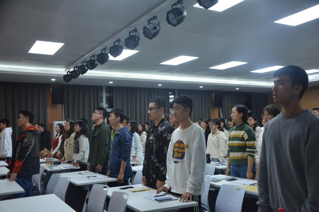 开班典礼共有5项议程。第一项议程:全体起立,奏唱共青团团歌。第二项议程:由太阳集团tyc539应用统计学2018级冯睿同学代表入党积极分子讲话。冯睿同学在讲话中提到,青年应该要有青年的担当,并引用梁启超先生的《少年中国说》来与各位入党积极分子共勉。第三项议程:由与会嘉宾为参训团员佩戴团徽。第四项议程:由公司党委副书记陆伟致辞。在讲话中,陆书记提到:“公司是学习和充实自己的重要平台,各位团员们要把握机会,认真学习,相互交流,汲取经验。并且对以下几点做出了强调,首先要端正学习态度,正确认识团课培训的重要性,不功利,不盲从。其次,要勤奋学习马克思列宁主义,毛泽东思想,邓小平理论,三个代表重要思想,科学发展观,习近平新时代中国特色社会主义思想等基础理论,提高自己的思想觉悟。最后,不能坐井观天,要多与他人交流,三人行则必有我师。”第五项议程:由物电公司员工代表带领全体成员进行宣誓。