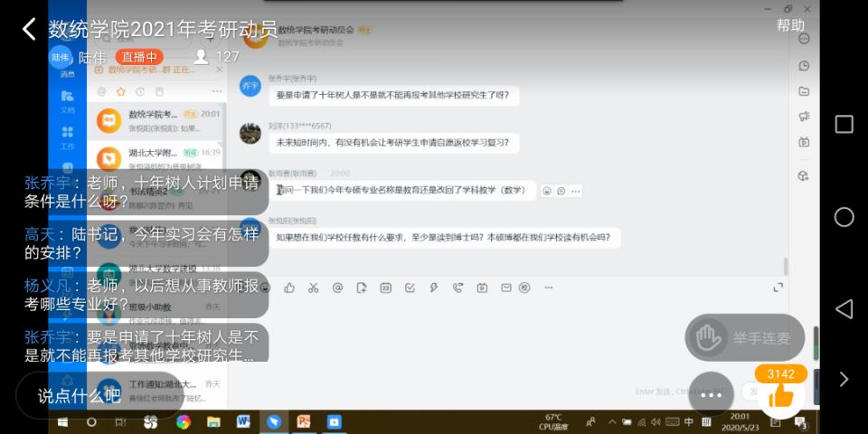 2020年5月23日晚,太阳集团tyc5392017级员工考研动员宣讲会在钉钉平台线上召开。公司130余名员工参加了此次考研动员会。会议由公司党委副书记陆伟主讲。