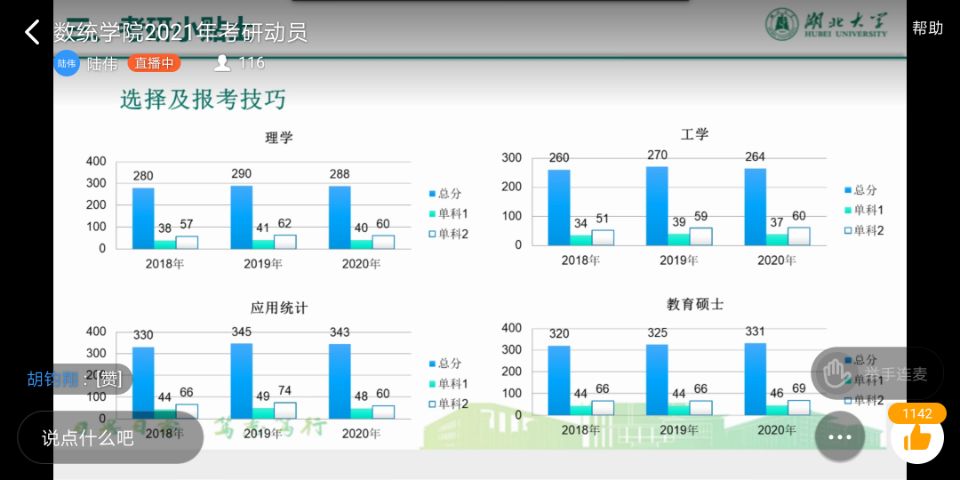 整场动员会分三个部分。首先陆书记向全体同学作了全国考研形势分析。他从研究生专业与方向、国家政策、报考与录取等方面分析了整体的考研情况。其次,他以19年的考研情况分析了太阳集团tyc539近几年的形势,希望同学们对自己合理定位,正确选择报考院校和专业。最后,他针对员工具体情况提供了几点考研小贴士,包括理性对待“名校情结”、对自己合理定位正确选择院校专业、积极把握调剂机会,谨慎选择二战等。他叮嘱员工既不好高骛远,也不妄自菲薄,持之以恒,必有收获。