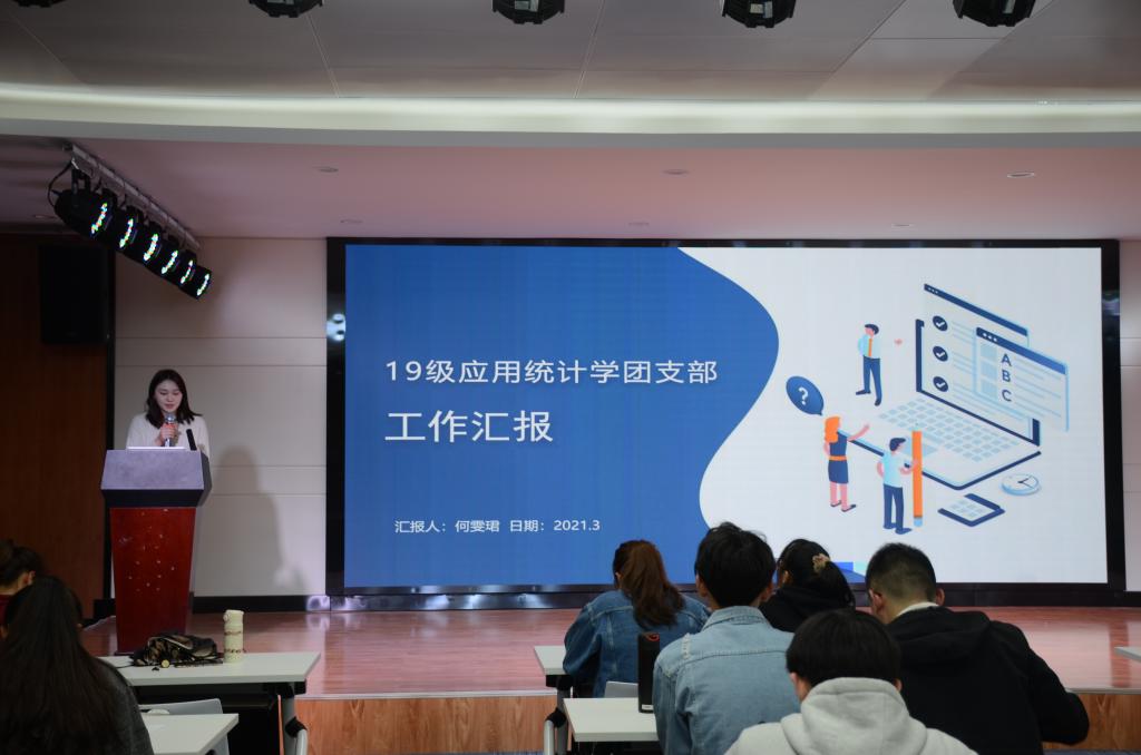 大会开始,全体同学起立,奏唱团歌,各支部的展示也正式开始。所有支部均从支部建设情况、活动展示、支部风采三个方面,展示支部的独特风采。其中,数学1803团支部汇报人凭借其独特的嗓音有力地抓住了所有人的目光,并结合师范班的特色活动——黑板字比赛,展示了一个努力奋斗的集体;数理金融1801团支部凭借着优秀的成绩,各种竞赛中的优秀表现,展现了班级积极向上的优异品质;信息与计算科学1802团支部介绍支部多名优秀团员们组成的“初阳献血志愿服务队”多次积极参加志愿献血活动,展示团员们对志愿公益的热爱;19级数学师范团支部通过三个令人发省的问题,展示了这个团支部对于团学工作的思考;19级信息处理团支部通过对团支部介绍、年度工作总结、特色团日活动展示和支部优秀团员荣誉这几个方面展示了支部的努力成果;19级应用统计学团支部通过特色团日活动展示作为“试点团支部”努力开展活动的决心与意志。