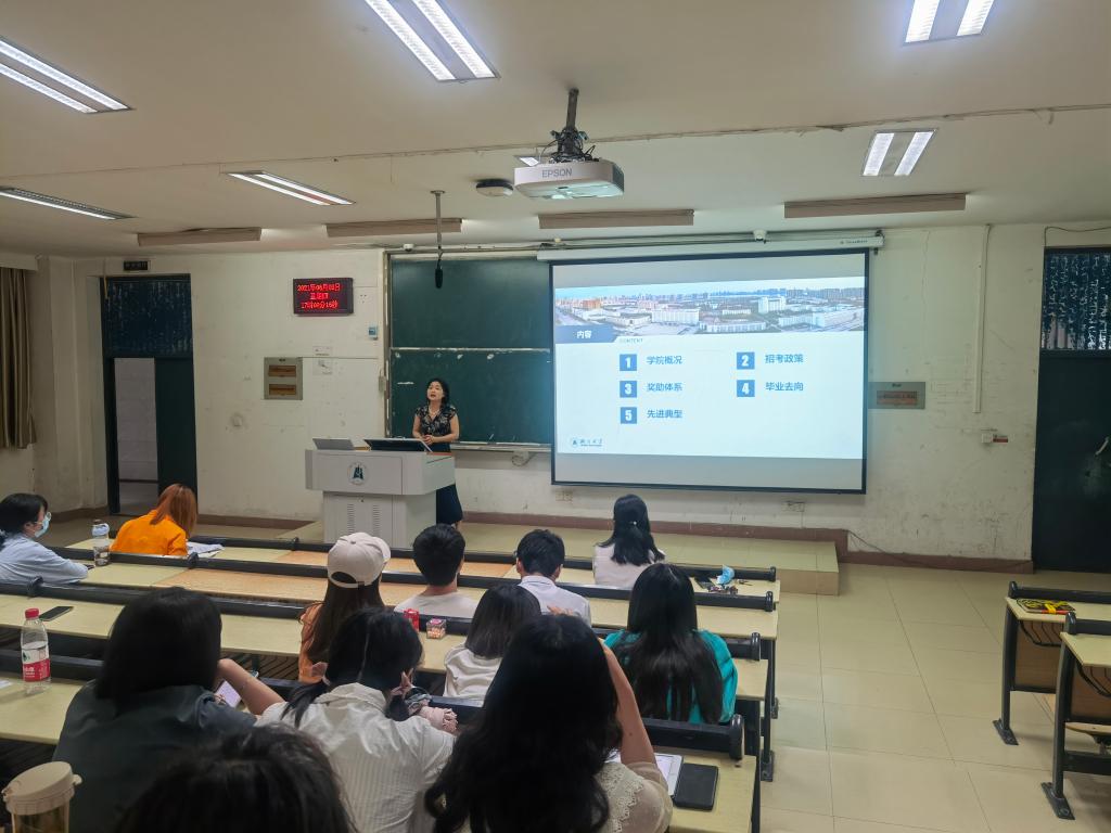 其次,向经理就公司概况、招考政策、奖助体系等方面向2018级考研员工作招生宣传。她向同学们详细介绍了公司学科结构、团队队伍和学术交流情况,让同学们更加了解公司公司产品模式和学科实力,提高了同学们报考本院研究生的意愿。