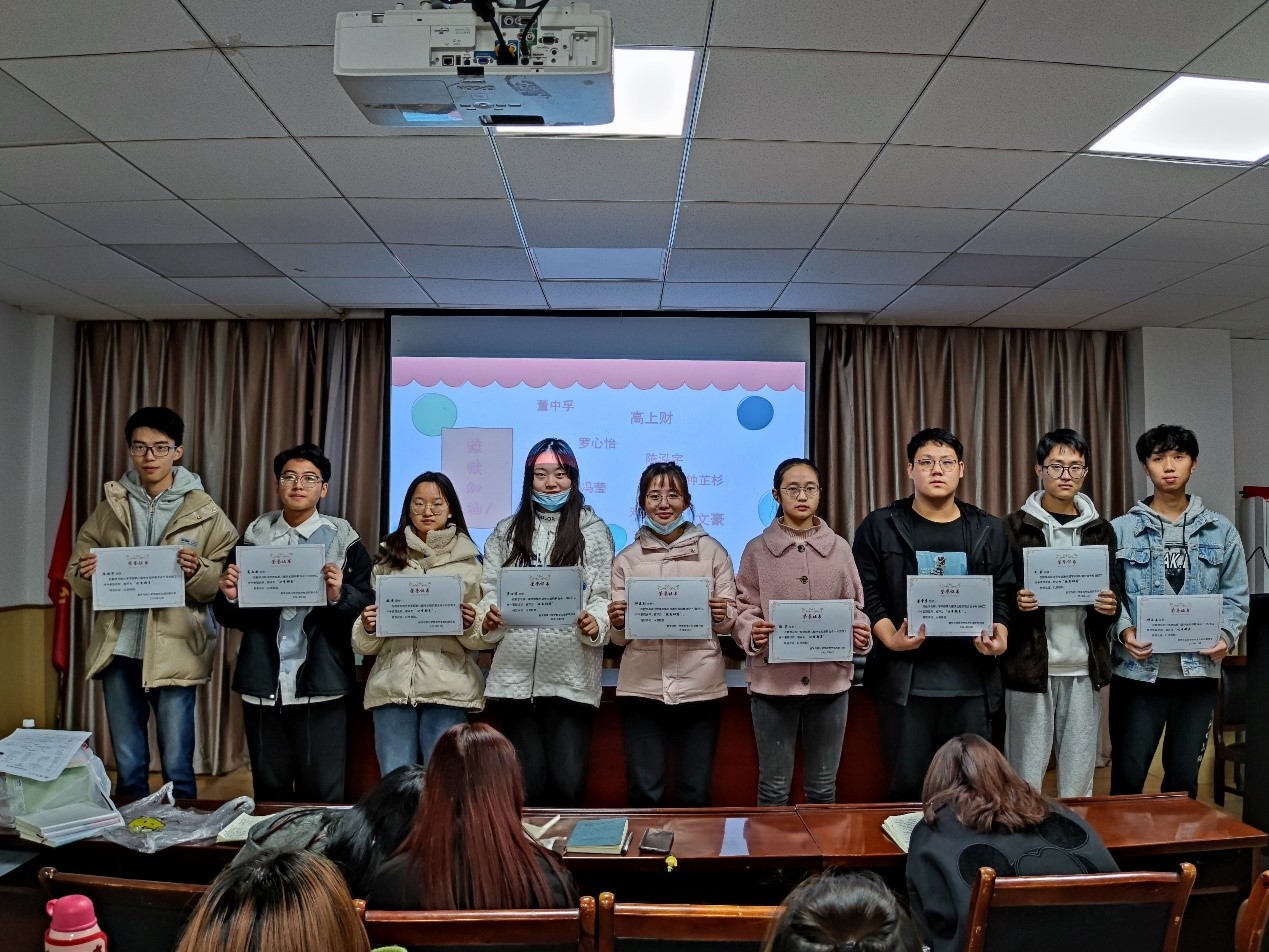 会议第二项,对十月份表现优秀的干事进行表彰,并现场颁奖合影留念。