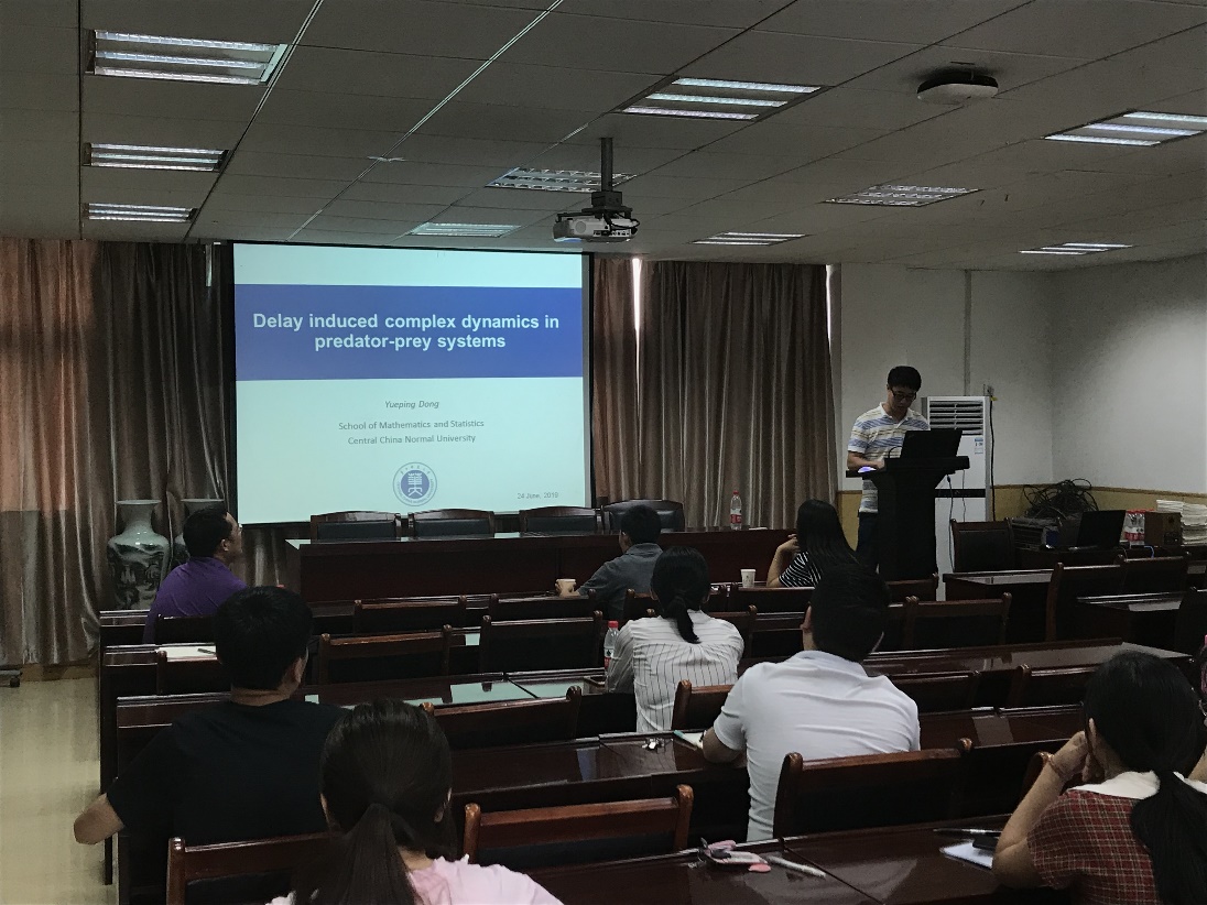 2019年6月24日下午,数学系96级员工、中国地质大学(武汉)付丽华教授和华中师范大学董岳平博士应邀来访公司,在院201报告厅为相关师生分别做了题为《基于深度学习的地震数据重建方法》和《Delay induced complex dynamics in predator-prey systems》的学术报告。