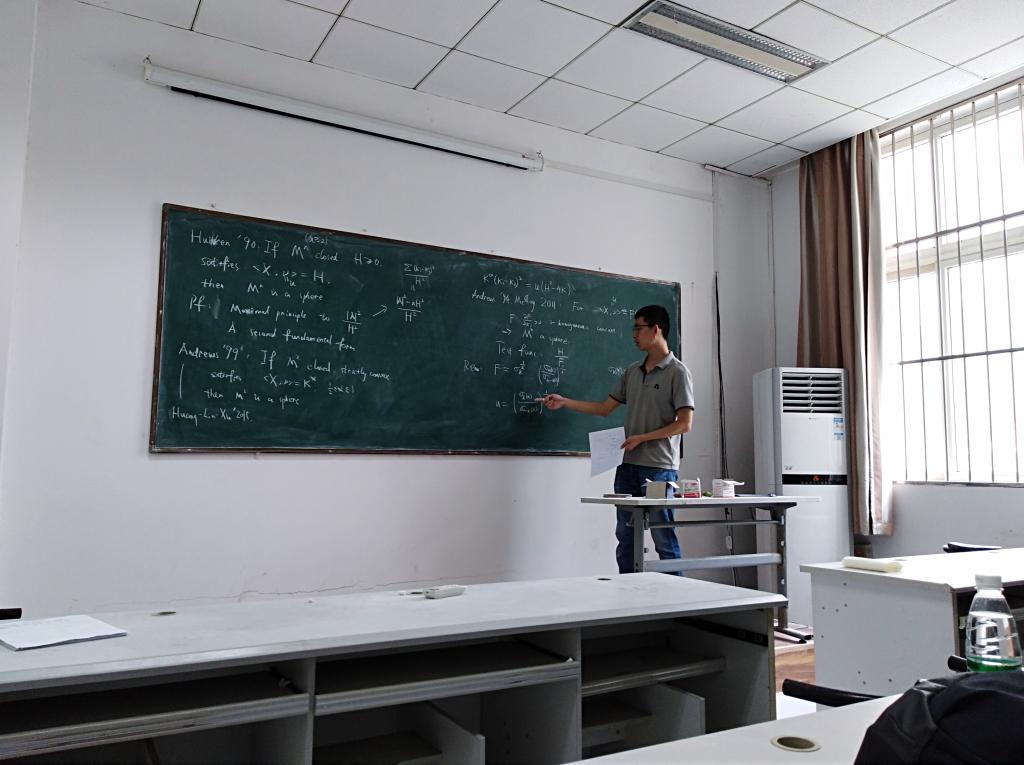 7月13日上午,公司07级员工、中国科学技术大学高山泽博士应邀来访公司,在院107教室为相关师生做了题为《曲率流的自相似解的唯一性》的报告。