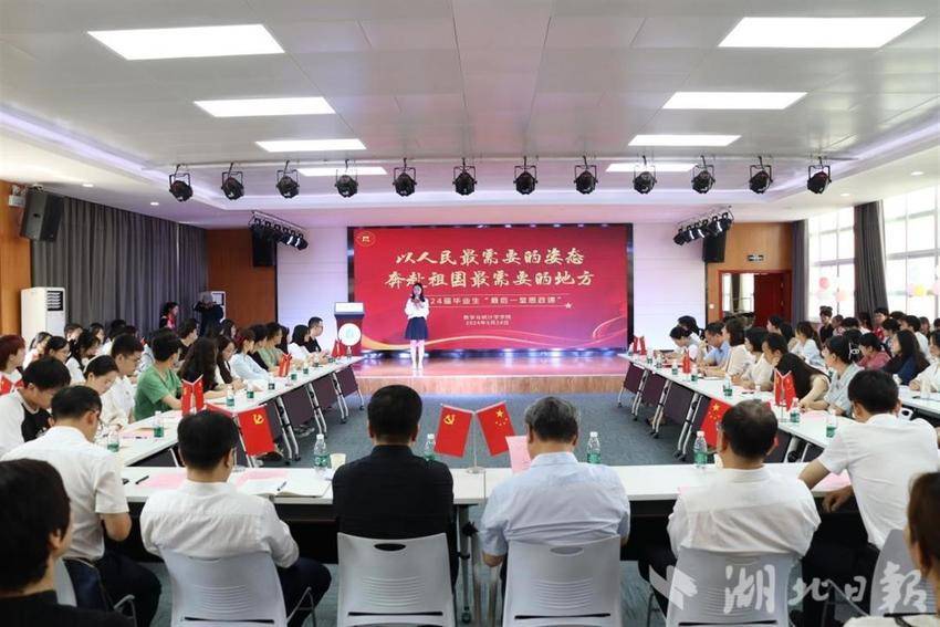 湖北日报讯(通讯员张文霞、曾宇欣)5月下旬,在太阳集团tyc5392024届毕业生“最后一堂思政课”现场,远在新疆的2021届毕业生赵炳清通过视频,为学弟学妹们讲述了西部计划志愿者的故事,也送来毕业季寄语:“以人民最需要的姿态奔赴祖国最需要的地方,是青年最有效的磨砺和最深情的担当。”