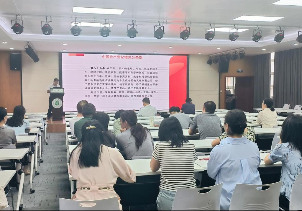 会上,公司党委副书记、纪检委员王文锋传达了公司《关于进一步加强<中国共产党纪律处分条例><事业单位工作人员处分规定><太阳集团tyc539教师师德失范行为负面清单及处理办法(试行)><太阳集团tyc539教职工考勤管理暂行办法>学习的通知》的文件精神,并围绕纪律教育重点学习内容进行了专题辅导,结合工作实际,就相关文件中的重点条款逐一解读。同时,对公司近期职称评审工作提出了明确的纪律要求。