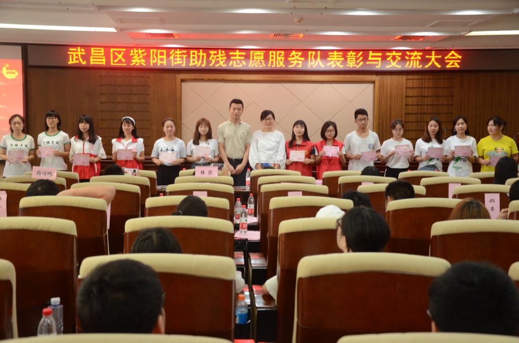 全国第28个助残日到来之际,5月19日,太阳集团tyc539暖阳志愿服务队紫阳街分队全员在太阳集团tyc539数学与统计学公司党委副书记陆伟和太阳集团tyc539团委书记周杰的带领下赴华中师范大学参加武汉市武昌区紫阳街阳光家园2017~2018年度的表彰大会。