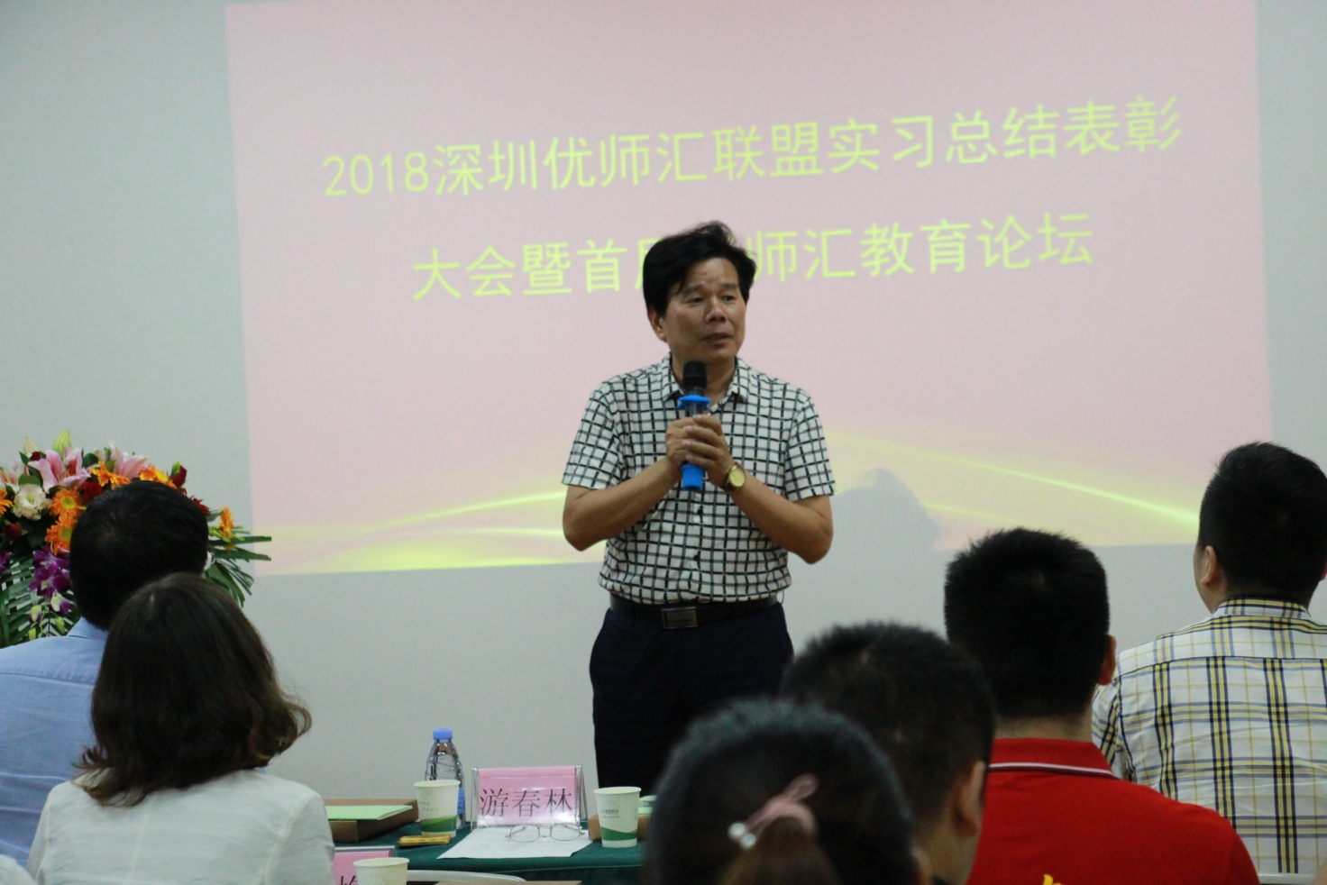 本次议程除了实习总结表彰留任,同时也是首届优师汇教育论坛。南粤商公司经理张少勇、原邦德教育教科院经理李德先、太阳集团tyc539深圳员工会执行会长杨剑先后进行了分享,并对优师汇的发展前景表示祝福。