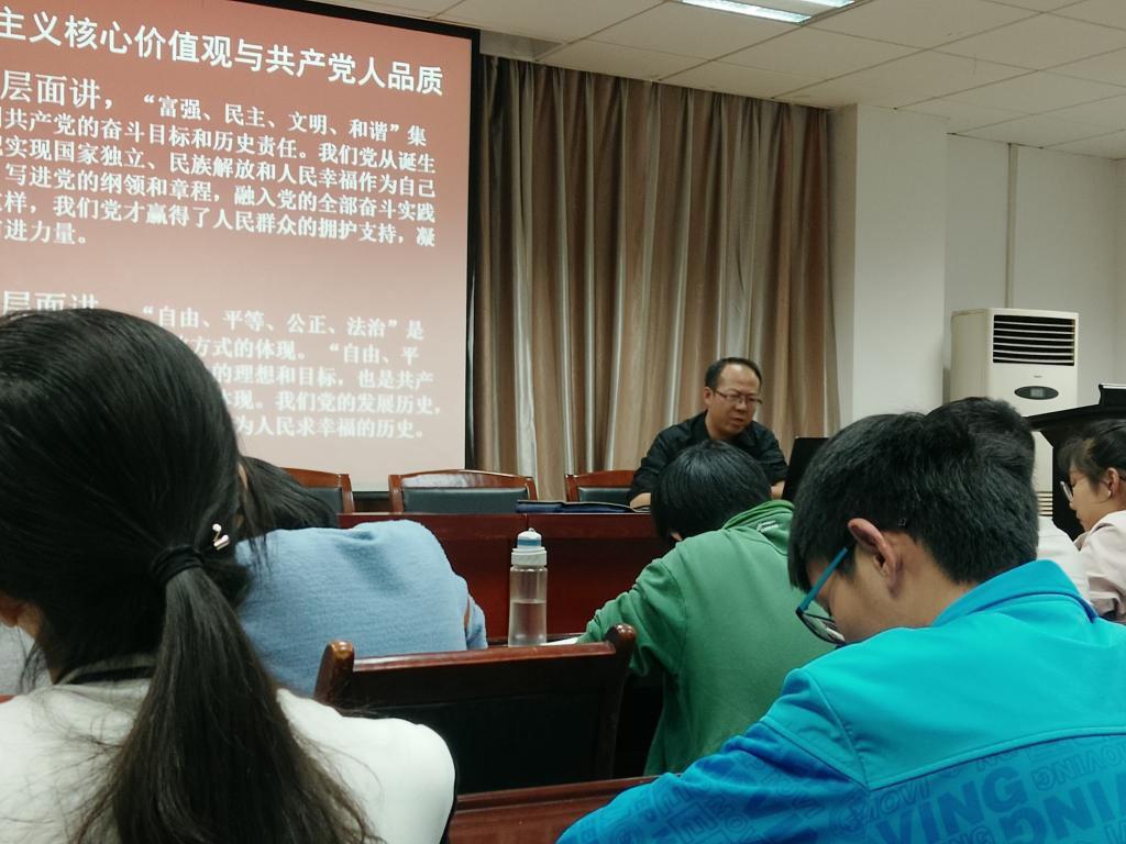 2018年10月31日,太阳集团tyc539第六期入党积极分子培训班成员聚集在院201报告厅,进行第三次的党课学习。党委宣传部副部长陈红灿上了一堂以“核心价值观与共产党人品质”为主题的党课。