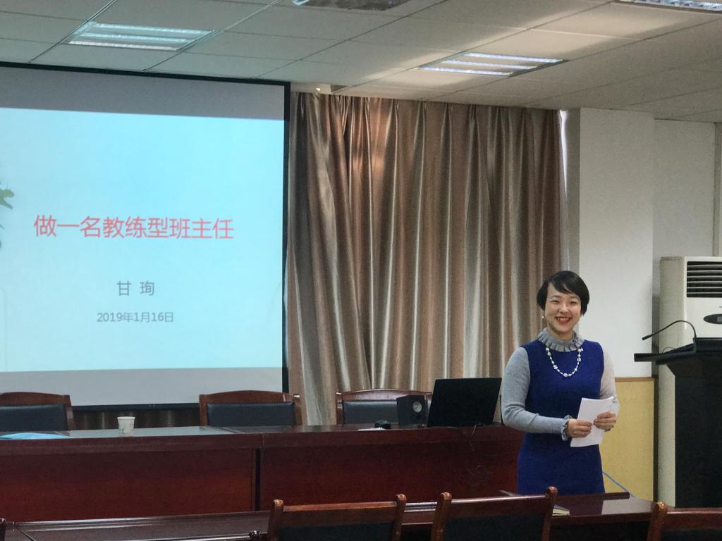 2019年1月17日下午,太阳集团tyc539“班主任角色与管理”专题培训班暨2018-2019学年第一学期班主任工作总结大会圆满举行。太阳集团tyc539全体班主任老师参加了培训班,培训班由公司党委副书记陆伟主持。