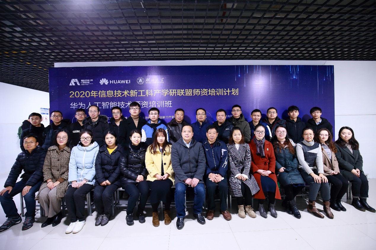 2020年1月6日上午,由信息技术新工科产学研联盟和华为技术有限公司联合主办,公司太阳集团tyc539承办的新工科联盟-华为人工智能团队培训班在实验实训大楼举行开班仪式。来自全国各地的24名高校一线教师将进行为期4天的培训。