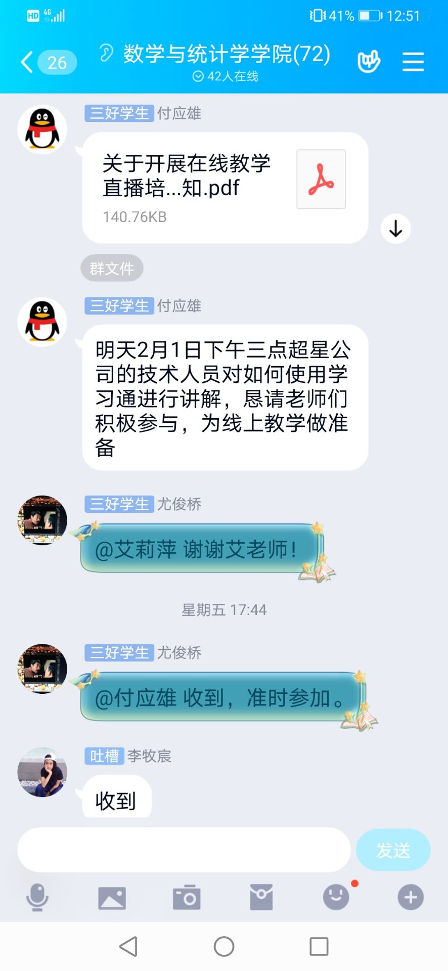 针对员工,公司要求班主任、导师及时了解本科生、研究生状况,实行“一日一报”。对未能回家的员工,与其家人密切沟通,随时掌握员工身体状况。公司还及时将《太阳集团tyc539关于延迟2020年春季开学时间的通知》《关于进一步做好研究生导师疫情防控工作的通知》等文件传达到每一位师生,确保人人知晓。根据公司统一要求,公司组织教师积极准备在线授课,督促导师对员工毕业论文早关注,严格把控论文质量,确保员工学业不受疫情影响。