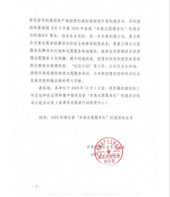 为进一步贯彻落实习近平总书记给华中农业大学“本禹志愿服务队”重要回信精神,大力弘扬志愿精神,引导广大青年投身志愿服务,团省委启动了2020年省级“本禹志愿服务队”创建活动。经团队申报、公司推荐、省级审查,公司“小书童”支教团入围为2020年湖北省“本禹志愿服务队”。