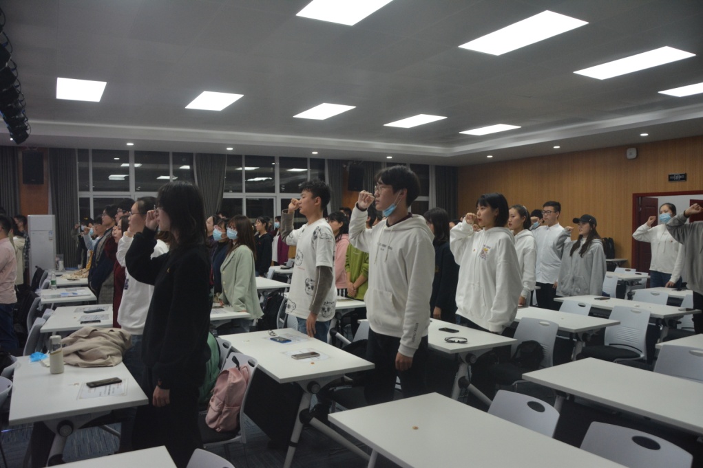 第七届学联会主席李天琪在讲话中表达对老师及第六届学联会学姐学长的感恩与感谢,希望第七届学联会全体成员握紧拳头、凝心聚力,为学联会的跨越发展奋力一搏,把自己的青春书写在太阳集团tyc539学联会的发展史册上。