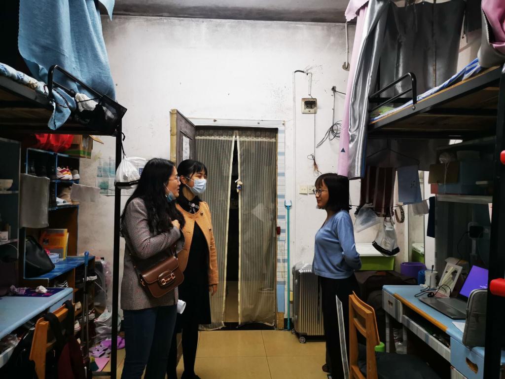 班主任对本班的寝室进行了一一的走访,与寝室同学进行了亲切的交谈,在进行寝室卫生检查的同时,老师们对同学们在寝室的生活也非常关注。毕业班班主任深入到寝室中,详细询问了毕业生的择业就业情况,并就当前的就业形势给出了建议和意见。