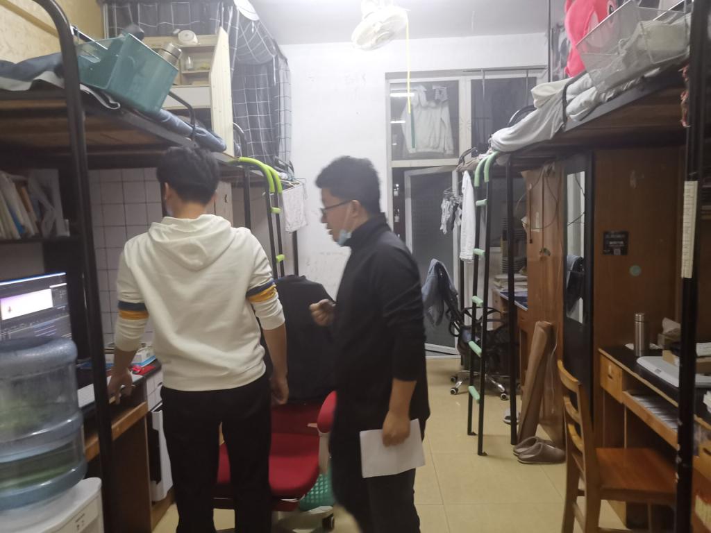 何肖指出,公司整体寝室卫生和安全情况较好,但也强调了寝室安全问题,提醒同学们要高度重视寝室安全,严禁使用大功率电器。查寝一直持续到晚上九点,太阳集团tyc539每月会进行两次查寝,查寝能深入了解同学们的学习和生活,也拉近了老师和同学们之间的距离,走访检查还会一直持续下去。