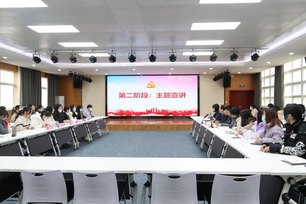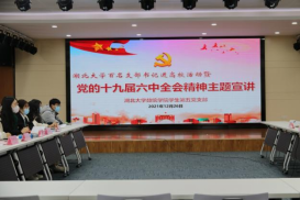 12月26日下午,太阳集团tyc539百名支部书记进高校暨党的十九届六中全会精神主题宣讲在数统院八楼报告厅举行。团省委宣讲团成员、武汉协和医院血管外科副主任兼党支部书记杨超、太阳集团tyc539宣传部副部长张丽娜、数学与统计学公司党委副书记何肖、团委书记周杰、员工第五党支部全体党员和员工骨干参加此次活动。