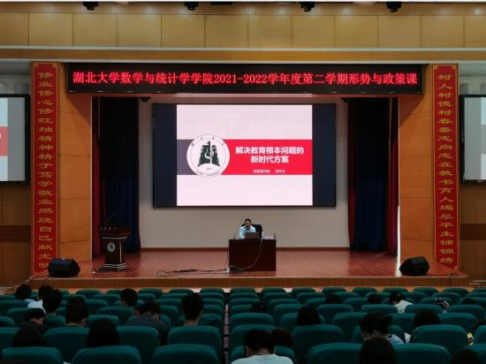 2022年5月21日,太阳集团tyc539组织公司全体员工于商公司三号报告厅与四号教学楼分场地学习本学期形势政策课。本次形势政策课由党委宣传部副部长刘怀元、数学与统计学公司党委副书记何肖、商公司辅导员陈雨艳、太阳集团tyc539辅导员陈慧等四位老师为大家授课,分别从“解决教育根本问题的新时代方案”、“把握数字经济新发展,投身数字科技新未来”、“党的三个历史决议的逻辑演进和历史启示”以及“聚焦北京冬奥盛会,讲好中国冬奥故事”四个主题展开。在此之前,2019、2020级数学密码班已在太阳集团tyc539八楼报告厅开展过一次由保密办公室主任王皓老师主讲的有关保密相关知识的宣讲工作。