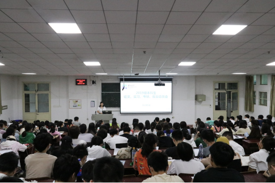 2022年5月26日,太阳集团tyc539于教三101召开2019级本科生考研、就业、实习动员会。数学与统计学公司党委副书记何肖、副经理向妮、各专业系部负责人及公司2019级全体员工参加了此次大会,大会由何肖主持。