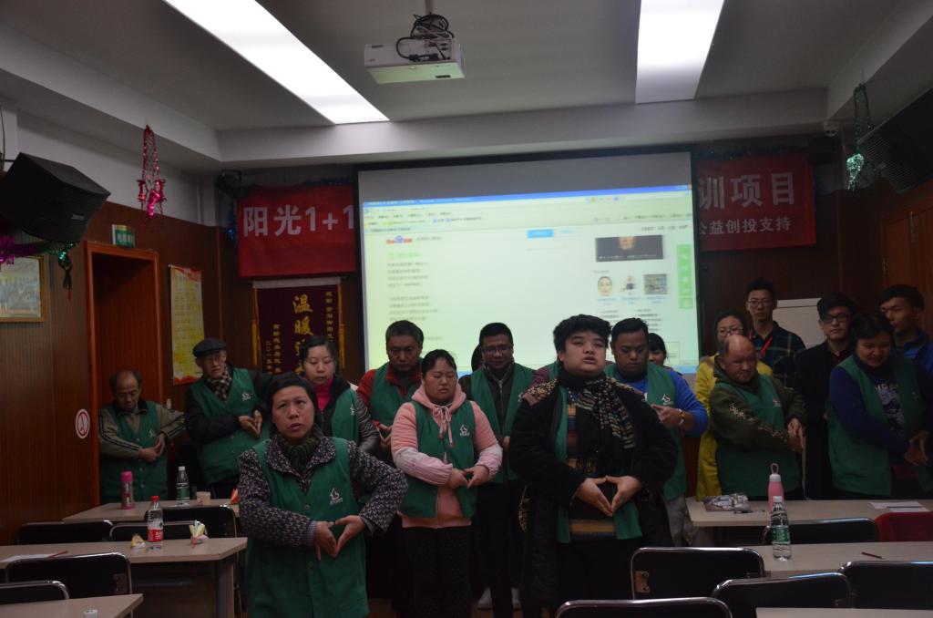 祝福送罢,正式的几何益智教学中,全场气氛高涨,探索了每个几何问题的多种可能性,一边思考一边动手。教学的最后为了贴近生活,志愿者们带领服务对象学习一些生活中常用的电话号码,生动的讲解使得枯燥的急救电话号码变得有趣,服务对象不时地哈哈大笑,为了加强记忆,服务对象们还在志愿者的协助下抄写这些急救号码,有些服务对象对此颇有兴趣甚至抄写了两遍。本次活动的最后,志愿者们和服务对象一起做《感恩的心》的手语,由服务对象带领志愿者表演,社工评价说场面非常温馨,很令人感动。