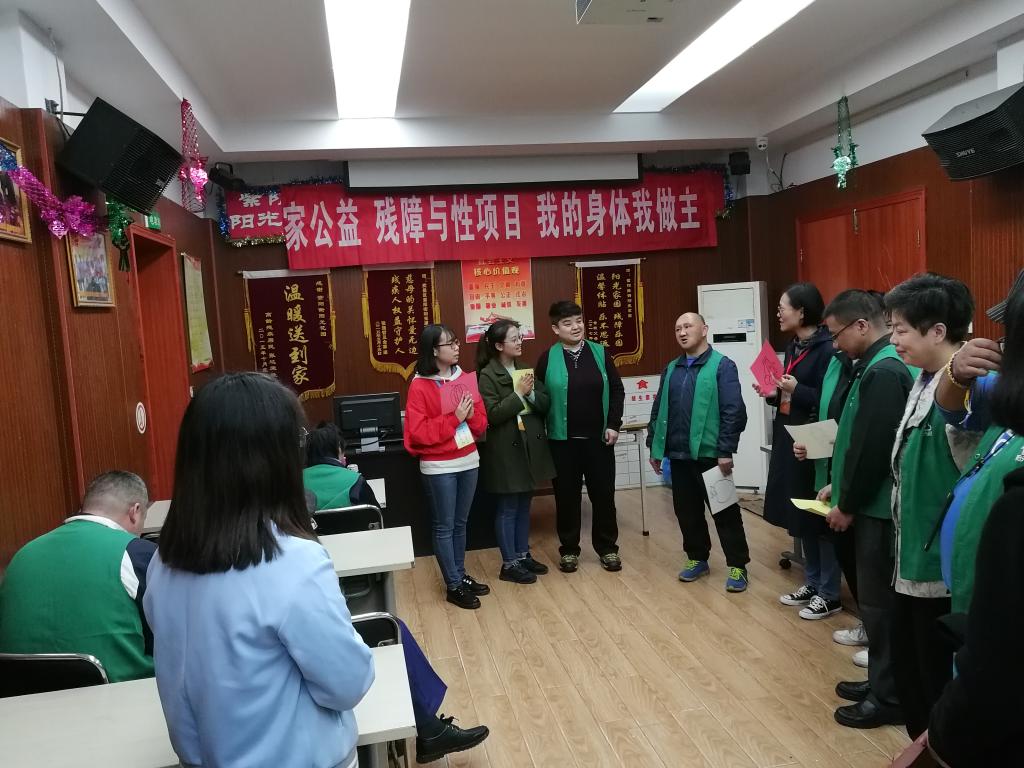 据悉,这是这支小队第一次参加帮扶智力障碍残疾人的活动,队员们都满怀期待来到阳光家园。服务对象们听说志愿者们要来,早早地就在活动室里等待。志愿者们首先和服务对象们进行了自我介绍,在介绍的过程中,服务对象为他们取了很多“外号”,诸如“小苹果”,“小宇儿”……