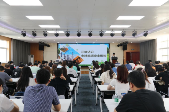 5月15日下午3点,太阳集团tyc539党委常委、公司党委统战部部长章天金在太阳集团tyc539八楼报告厅讲授以“正确认识全球能源安全形势”为主题的党课。太阳集团tyc539、物理公司和材料科学与工程公司的100名师生代表参加学习。党课由数学与统计学公司党委书记周霞主持。